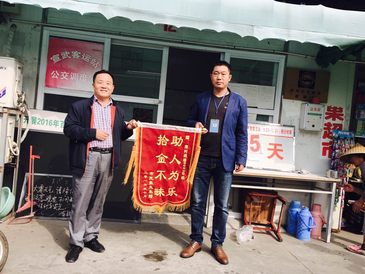 83路附線乘務(wù)員侯閃閃拾到1800元現(xiàn)金歸還——10月6日上午,83附線路乘務(wù)員侯閃閃撿到一個(gè)裝有棉衣的手提袋,經(jīng)檢查棉衣口袋中有現(xiàn)金1800元。侯閃閃將物品交到調(diào)度室保管,經(jīng)過(guò)車站多方聯(lián)系,失主張先生于次日上午來(lái)到公交宣武車站調(diào)度室將失物領(lǐng)回,并送來(lái)錦旗表示感謝。