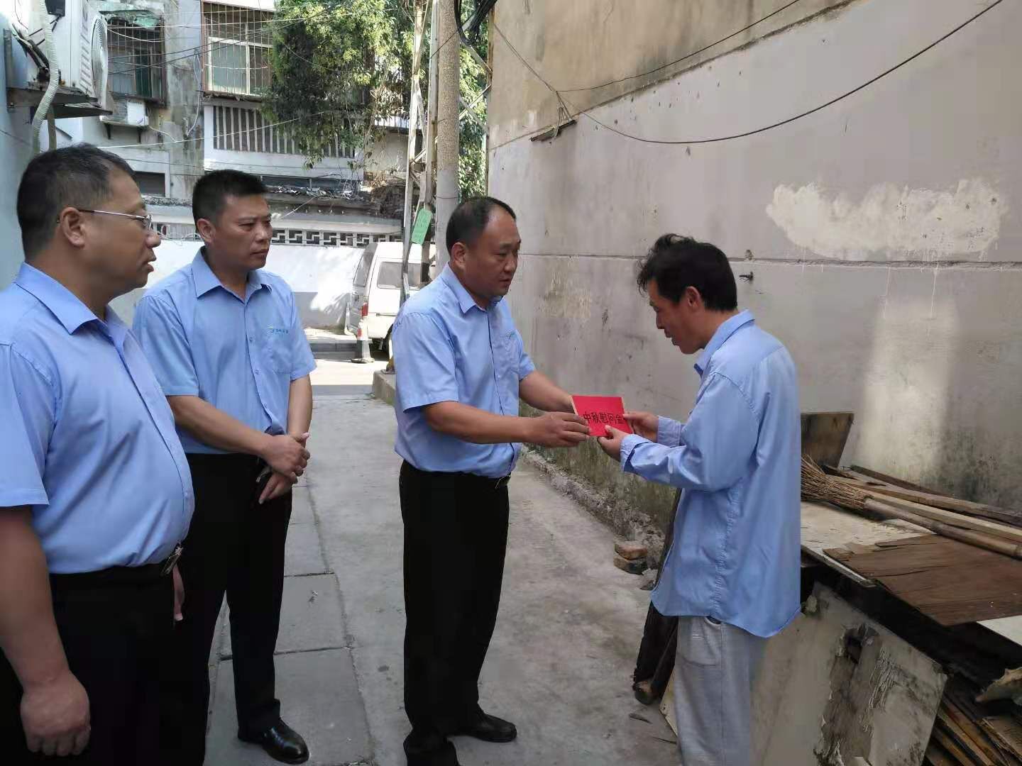 在督導隊員岳雷家中,馮陸陸總經理鼓勵他保持輕松的心情,樹立克服困難和戰(zhàn)勝疾病的堅定信心,努力走出困境。同時要求督導隊多給予關心,盡力幫助解決生活工作中的困難。