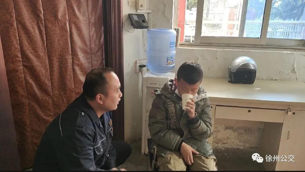 車隊服務人員閆翔給男孩倒了杯熱水,搬來椅子讓其坐下并耐心詢問道:“小朋友,家住哪兒?知道爸爸媽媽的電話嗎?”可男孩只說自己叫蔣彥君,今年12歲,媽媽在東站賣充電寶,家庭詳細住址不知道,家長電話也不記得。聽完后,閆翔趕緊用手機給孩子拍了張照片,發(fā)給東站現(xiàn)場調度員王海俠,讓其到東站查找,可王海俠問了個遍,也沒找到男孩的家人。最后,閆翔撥打了“110”報警電話,向民警求助。