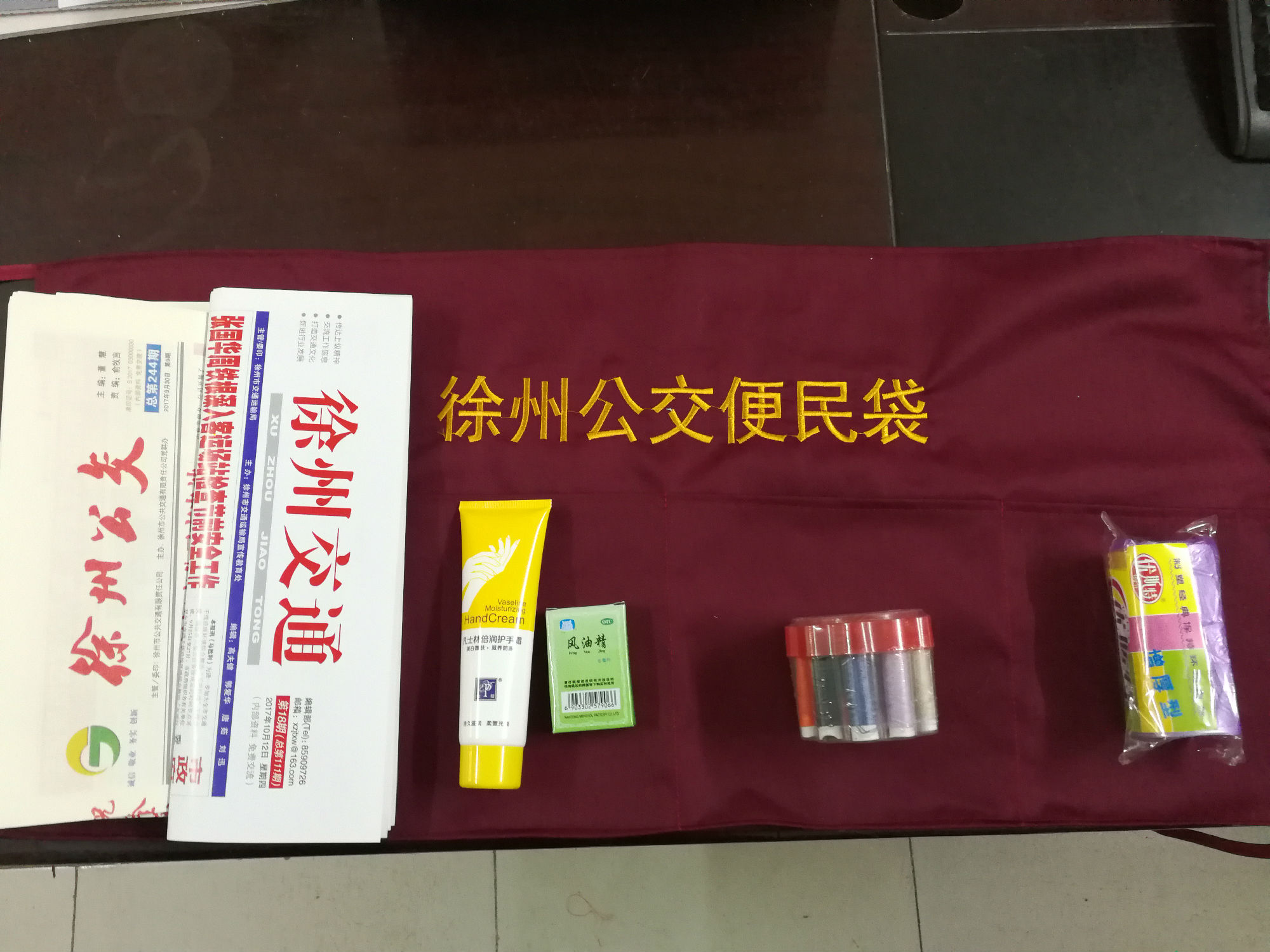 走進車廂,乘客會發(fā)現(xiàn)車廂前排座椅旁懸掛了一個“便民服務(wù)袋”,便民袋上有四個口袋,分別裝有乘車須知、一次性衛(wèi)生袋、報紙書刊、針線等,為乘客提供方便。目前,70多個便民袋已經(jīng)安裝完畢。乘客看到后紛紛贊許,十分暖心。