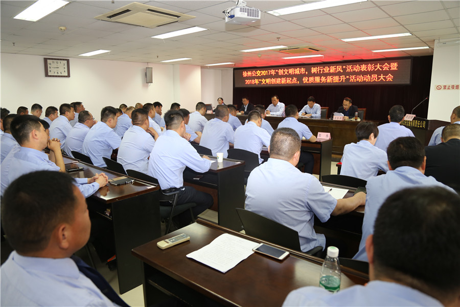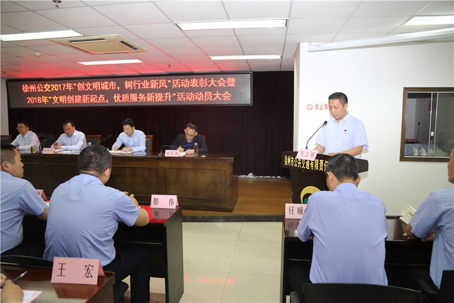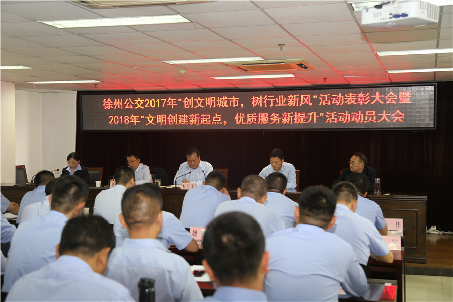 最后,公司董事長、總經(jīng)理杜紅軍作重要講話,對2017年文明城市創(chuàng)建工作進行了總結,對公交廣大干部員工在創(chuàng)建中的辛勤付出和取得的成績給予了充分肯定。同時,分析了目前的創(chuàng)建形勢,提出了新時期工作要求。他強調:各單位要不斷總結創(chuàng)建經(jīng)驗,用制度鞏固好已有的創(chuàng)建成果;要營造良好氛圍,用核心價值觀帶動行業(yè)文明新風;要深化創(chuàng)建內涵,用優(yōu)質服務打造公交文明新亮點。要以全國文明城市創(chuàng)建成功為契機,以常態(tài)長效為目標,努力打造溫馨公交、安全公交、便捷公交、智慧公交,以高質量服務,實現(xiàn)群眾滿意;以高標準要求,優(yōu)化公交形象,在流動的車廂傳播精神文明,譜寫出新時期公交行業(yè)文明創(chuàng)建的動人樂章,為加快建設“強富美高”新徐州交出公交人的滿意答卷!